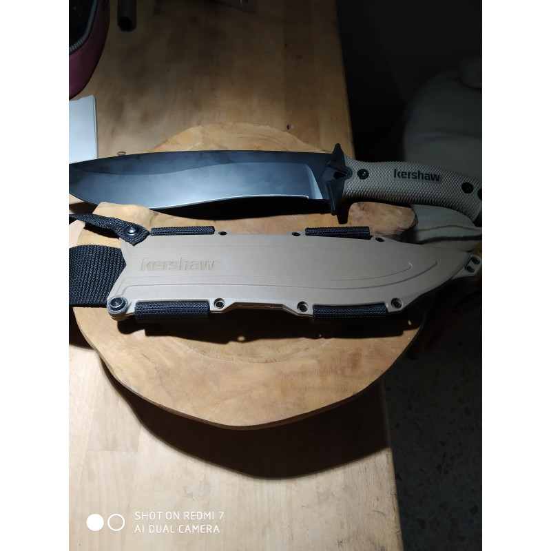 El filo recto de dimensiones aceptables permite trabajar al usuario de forma controlada y realizar en todo momento cortes limpios, sobre todo si se trata de operaciones tácticas que conlleven un riesgo importante. Concebido como machete, sus dimensiones permitirán cubrir un amplio espacio.