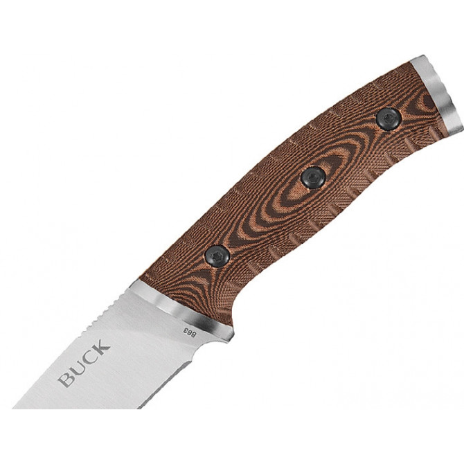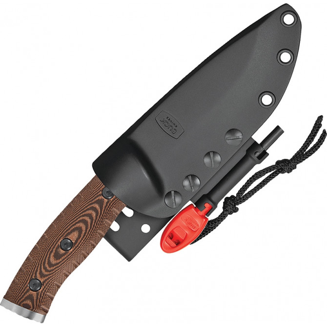 La prestigiosa marca americana Buck saca al mercado un cuchillo de supervivencia Selkirk, fabricado en acero inoxidable 420HC, con hoja enteriza. Empuñadura ergonómica fabricada en micarta con pomo reforzado de acero, este se puede usar como martillo. Incluye funda de nylon moldeada por inyección de color negro. Se puede poner en posición horizontal o vertical. Incluye pedernal y silbato, dos en uno.