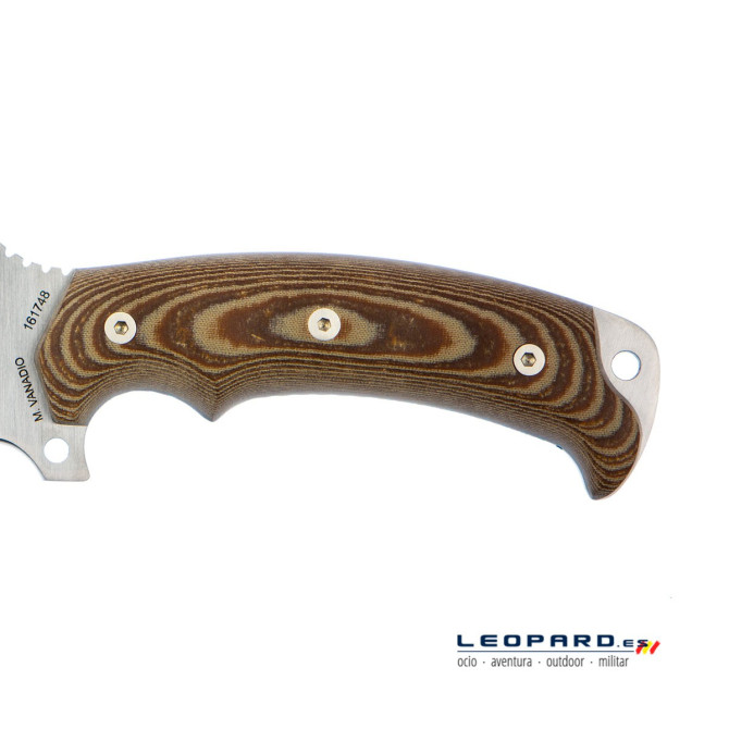 Ya tienes a la venta en Leopard el cuchillo Entresierras fabricado por la empresa española Cudeman, conocida a nivel mundial por los amantes de la cuchillería. Incorpora hoja drop point de acero inoxidable MoVa. La empuñadura ergonómica que lleva es de micarta de color marrón. Incluye funda de piel.