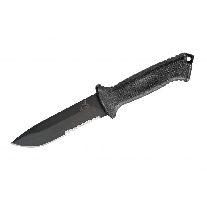 Cuchillo táctico Gerber con hoja fabricada en acero 420HC de color negro. Empuñadura fabricada en GFN ( Glass Filled Nylon) de color negro. Diseñado bajo la supervisión del ex militar Jeff Freeman, un cuchillo robusto y versátil indispensable para cualquier situación de supervivencia y aventura. Incluye agujero para cordon fiador. Incluye funda táctica.