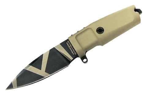 Un verdaderamente versátil "copia de seguridad" con sorprendentes cualidades de combate. La lámina de la hoja se caracteriza por una amplia rectificado plano, con un ángulo de whetting estrecha que lo hace particularmente agudo. La vaina dura automático tiene un tek-lok lo que significa que se puede colocar vertical u horizontalmente. Un cuchillo para uso intuitivo y extremadamente rápido, es ideal en caso de emergencia. Para cualquier tipo de emergencia.