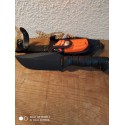 Heavy-Duty Warthog - 12 1/4" overall. 6 1/2" black finish 1085 carbon steel wide design blade. Grooved black Kraton handles. Lanyard hole. Black Cordura and leather belt sheath.