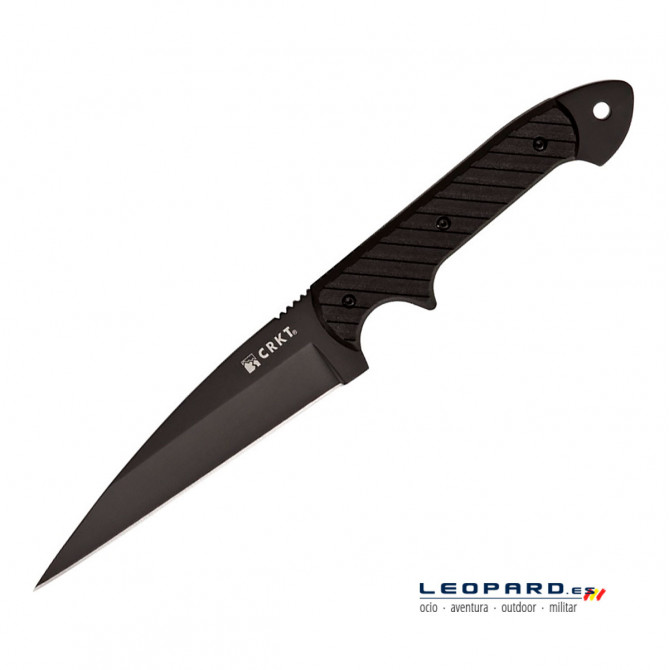 9 1/4" overall. 4 1/2" black finish 9Cr18 stainless wharncliff blade. Full tang. Textured black G-10 handles. Lanyard hole. Molded multi-position carry Kydex sheath. Designed by Bob Kasper and Pat Crawford. BRK Exclusive!