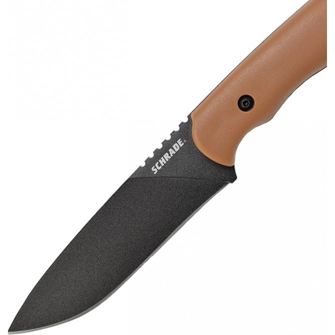 Schrade ha desarrollado el mango de este cuchillo con materiales de extrema resistencia, tanto para la creación de la hoja como para el mango del cuchillo. En este Frontier Fixed Blade se ha integrado una empuñadura de Grivory, un tipo de polímero termoplástico que posee alta resistencia a la abrasión y al impacto.