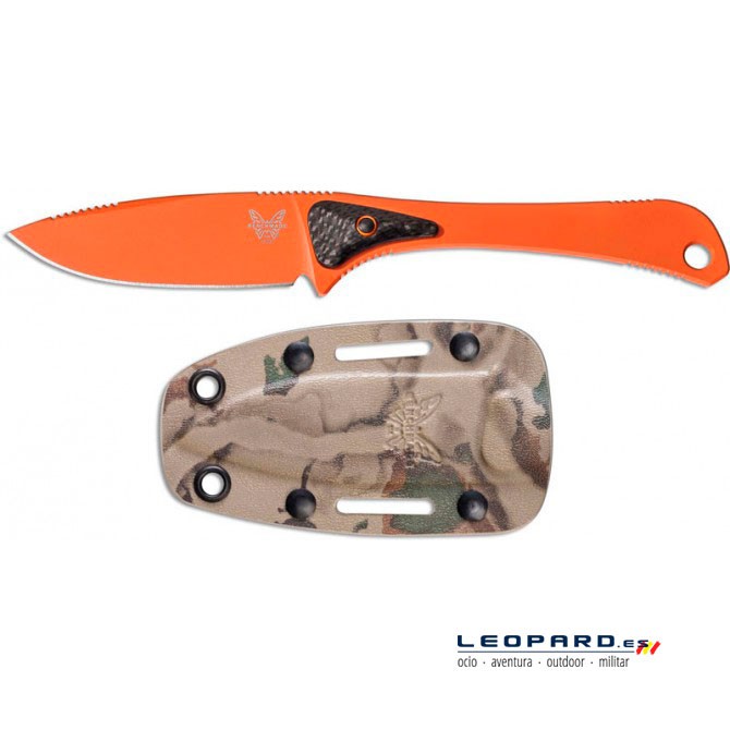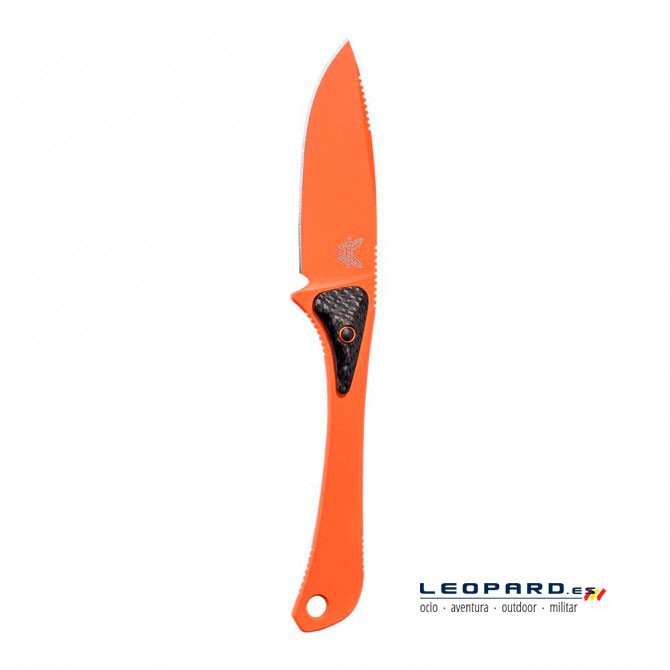 El filo de este modelo de Benchmade es recto, por lo que se aumenta en gran medida la superficie de trabajo. El usuario podrá realizar cortes profundos sobre grandes superficies, de una forma limpia, cómoda y segura. El acabado de la hoja es en color naranja muy estético.