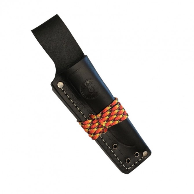 No se preocupe en ningún momento por su seguridad, ya que el cuchillo podrá ser transportado en la funda elegida por los diseñadores de Nieto. Está fabricada en piel, con cuerda de color naranja. Además, incluye el logotipo del fabricante Miguel Nieto en la parte delantera.