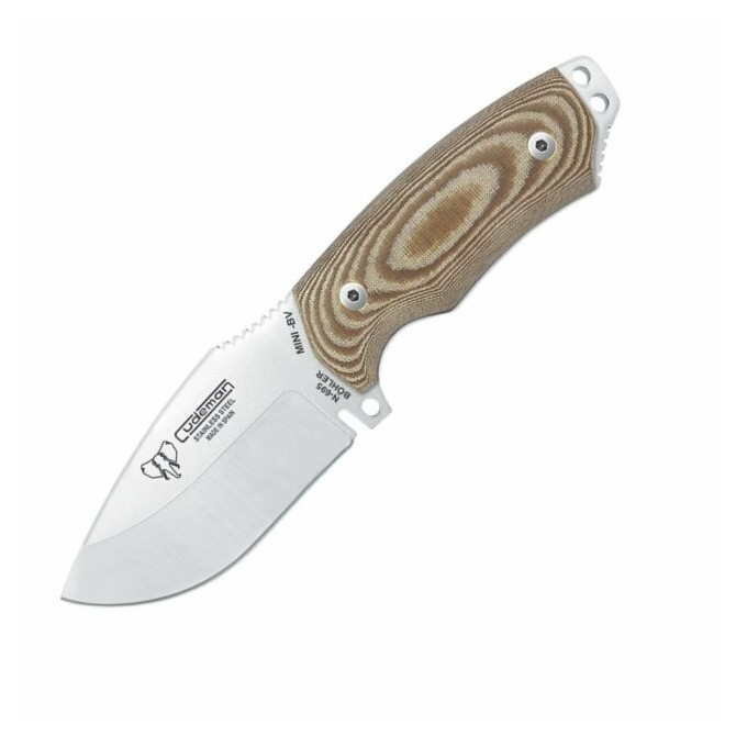La hoja enteriza de los cuchillos que forman la Serie Mini Boina Verde de Cudeman están diseñados con este tipo de aleación química que se caracteriza por una espectacular resistencia a la corrosión, conseguida gracias a un equilibrio estructural magnífico entre su agregado de cromo y carbono.
