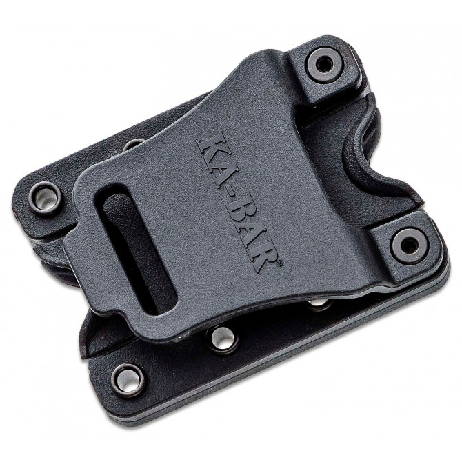 La funda de polímero presenta una forma rectangular y cuenta con el nombre de la compañía Ka-Bar sobreimpresionado. Asimismo, se puede ajustar tanto en distintos cinturones como en materiales tácticos.