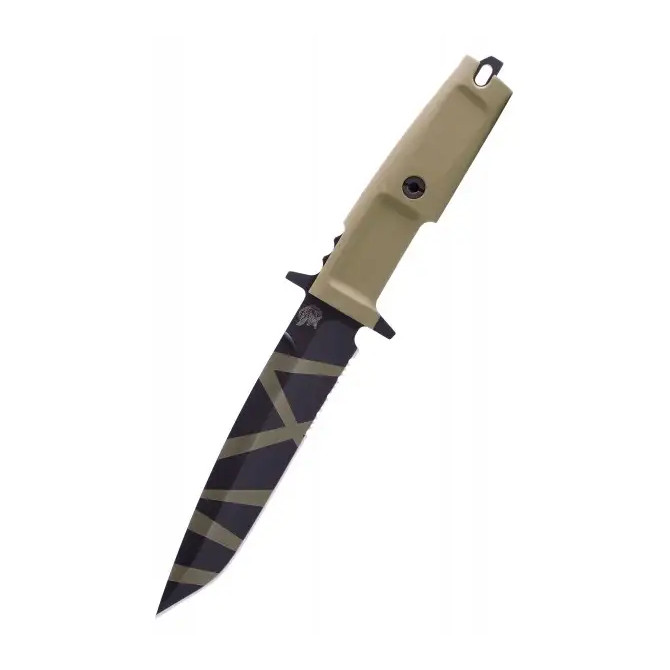 Ligero y manejable, este Col Moschin Desert Warfare tiene un diseño característico con empuñadura de color arena y una hoja gris con el sello de la marca y líneas a juego de la empuñadura.