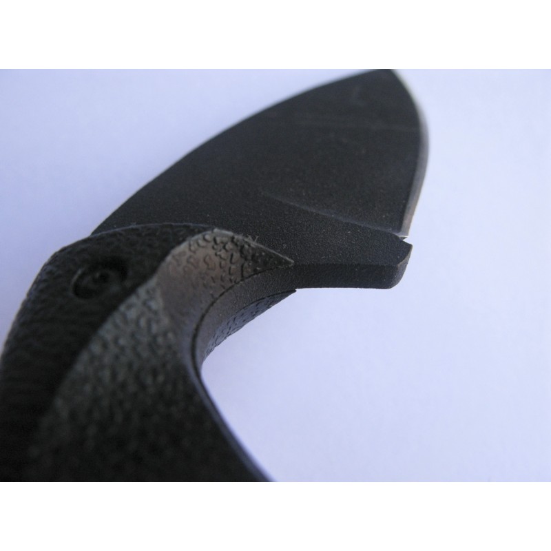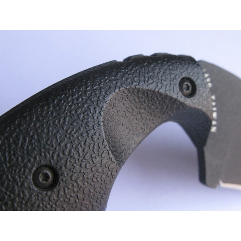 Cuchillo Ka-Bar TDI Law Enforcement Knife: Detalle del acabado anatómico de las cachas dezytel color negro y la guarda.