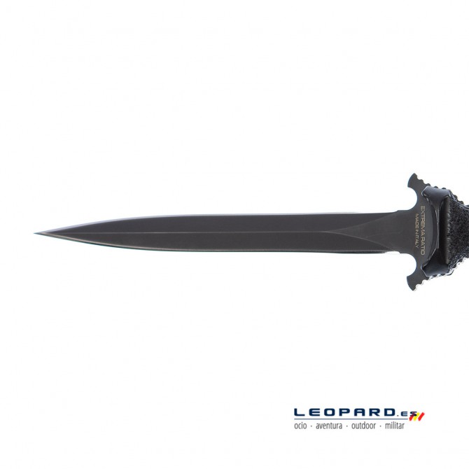 La compañía Extrema Ratio ha incorporado en este cuchillo una hoja tipo Daga. Se trata de un estilo de hoja simétrica y estilizada en el que van discurriendo sus lados paralelos hasta que se unen en el centro formando una punta. Así, se trata de una hoja perfecta para perforar.