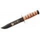 Ka-bar U.S. Navy Vietnam Commemorative. 12" overall fighting knife. 7" 1095 carbon steel blade with black epoxy powder coating and commemorative artwork. U.S. Navy tang stamp. Stacked leather handle with black powder coated carbon steel guard and pommel. Brown leather belt sheath embossed with U.S. Navy logo.