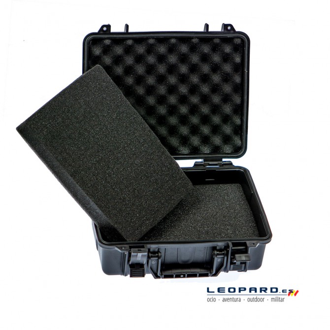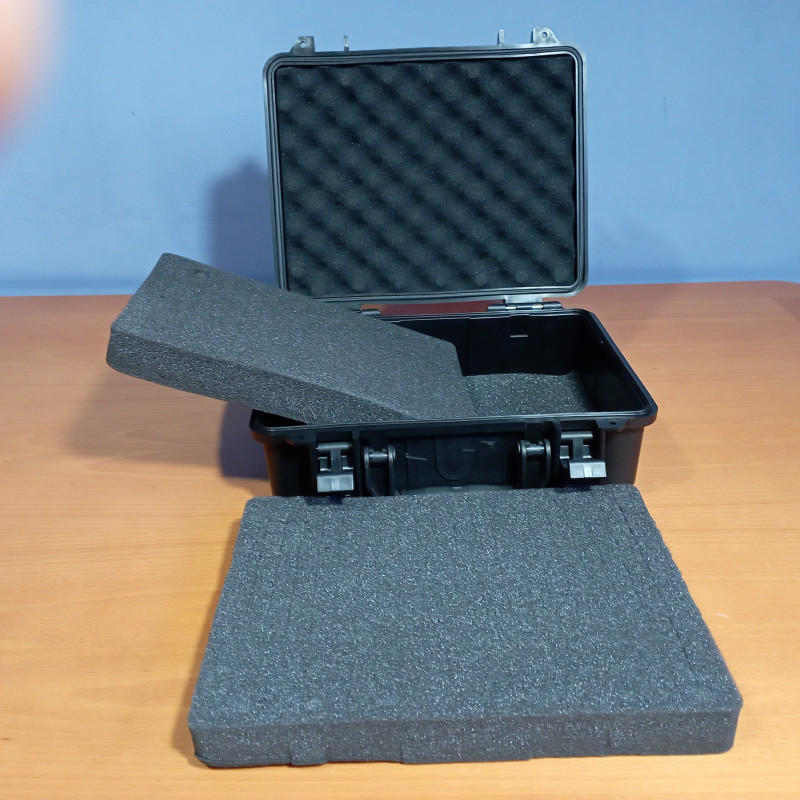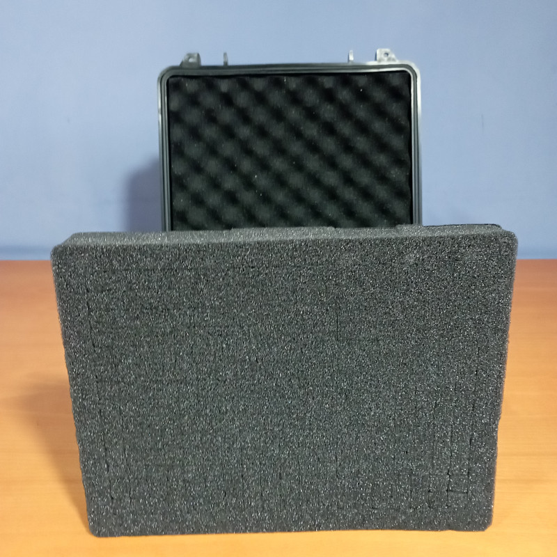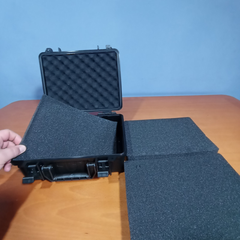 "Vista general del grosor de las planchas de espuma pre cortada del maletín rígido FMA, la espuma pre cortada te da la opción de hacer la forma del objeto a guardar y así irá incrustado en la espuma con total protección."