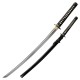 La empuñadura de esta katana está diseñada en piel sintética recubierta con un cordón de seda negro. Así mismo, incorpora una serie de pequeñas piezas ornamentales de latón que se conocen como menuki. De entre ellas destaca el símbolo japonés Shisa (Gold Lion), un ser mitológico de Japón.