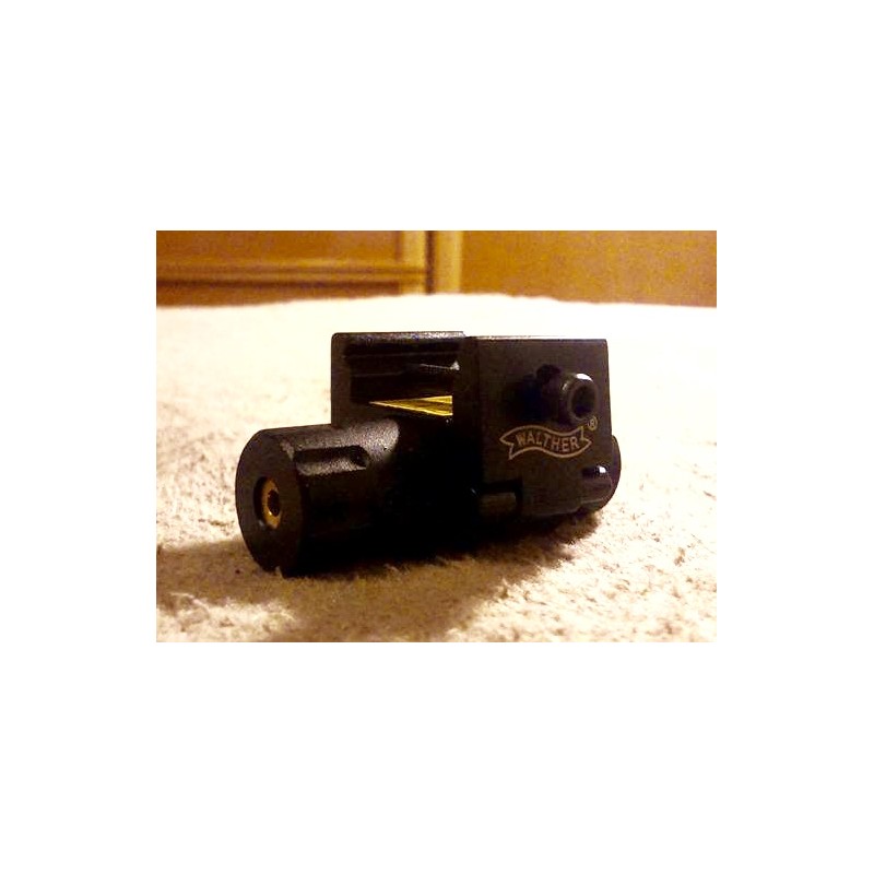 Aquí una vista frontal lateral de como queda el láser sobre una walther pps. Se ajusta perfectamente al carril picatini.