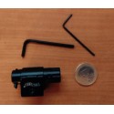 El láser se abre por medio de una pequeña bisagra que hace más fácil su colocación en el rail. El tornillo se aprieta con una pequeña llave allen también incluida.