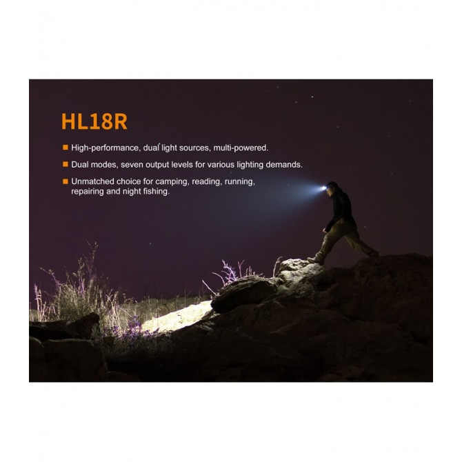 La famosa marca de linterna Fenix presenta nos presenta un nuevo frontal, el HL18R está preparado para realizar actividades como el trail running, la caza... etc. Tiene una potencia máxima de 400 lúmenes y un alcance de haz de luz de aproximadamente 76 metros. La linterna incluye una batería recargable de litio polímero de 1300 mAh, compatible con 3 baterías AAA Ni-MH / alcalinas.
