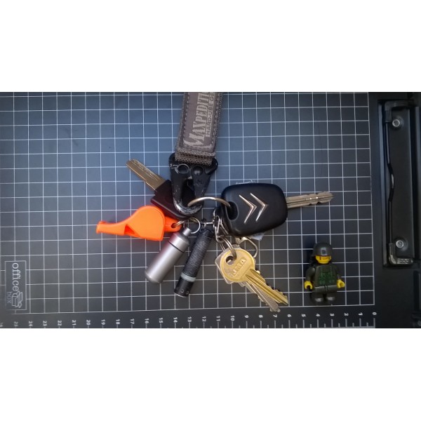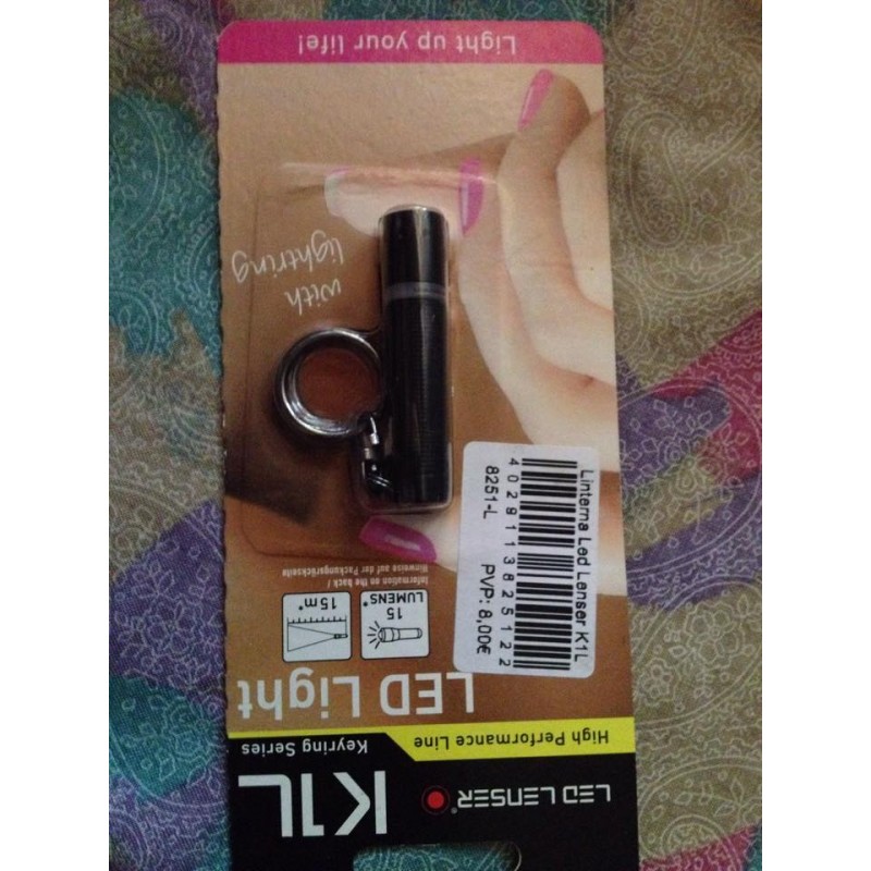 Mi linterna Led Lenser modelo K1L es un accesorio obligado con las llaves del coche. Es de haz potente; y el anillo de plástico traslúcido difunde el haz de luz lateralmente, iluminando un volumen muy amplio. Resuelve necesidades puntuales de iluminar la cerradura en un garaje, y dentro del coche.