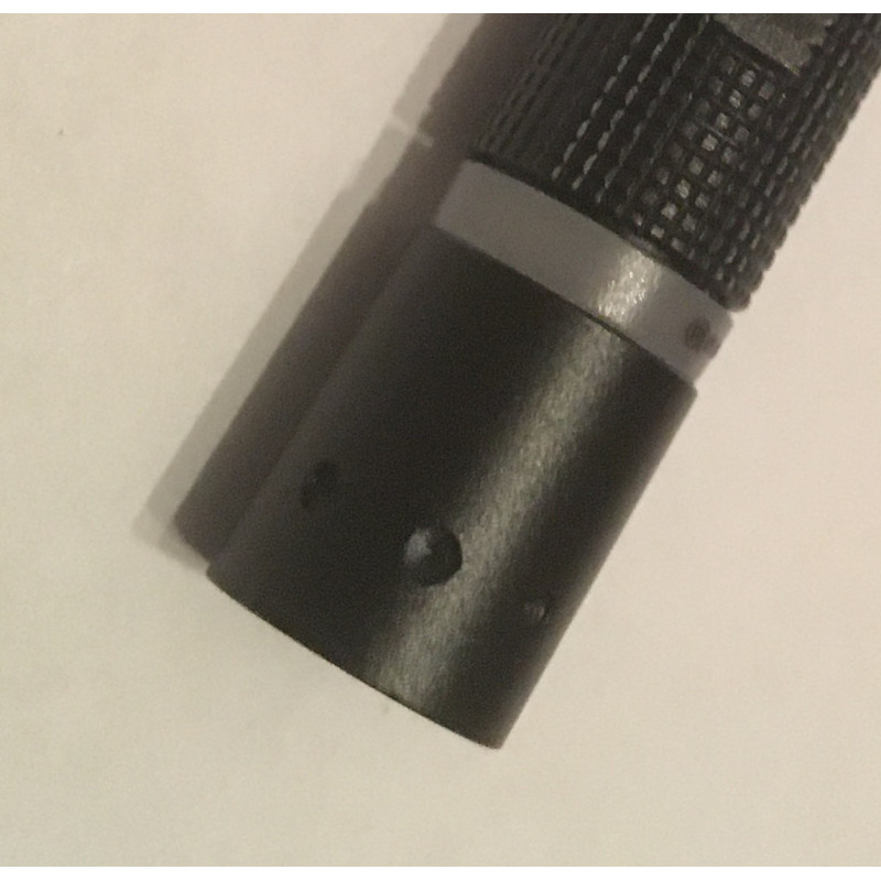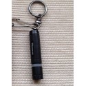 Pequeña linterna de tipo llavero de elevada luminosidad en relación a sus 10 gramos de peso. Fabricada en aluminio. Tiene un anillo translúcido para comprobar si está encendida incluso si está apoyada sobre la cabeza.