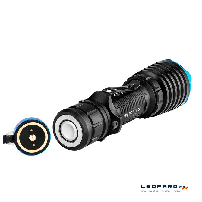 Otro factor determinante a la hora de escoger esta Olight Warrior X es su método de carga, ya que está alimentada por una batería de litio tipo 18650 recargable a través de un puerto magnético de última generación, que se ajustará a la base del producto facilitando al máximo la recarga de batería.