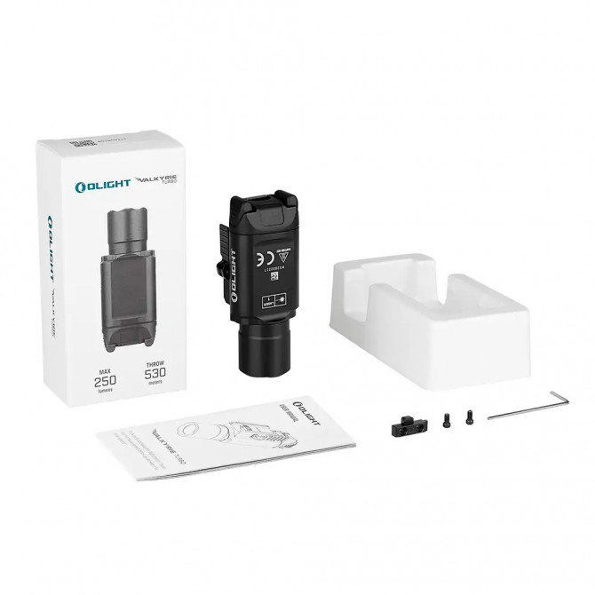 Olight lanza al mercado en 2022 la primera linterna LEP para arma corta de todo el mundo. La Olight Valkyria Turbo LEP nos ofrece 250 lúmenes de potencia, tiene un alcance máximo de 530 metros y 70225 cd de intensidad. Utiliza 2 baterías CR123A, y tiene una autonomía de 184 minutos. Tiene protección nivel IPX6.