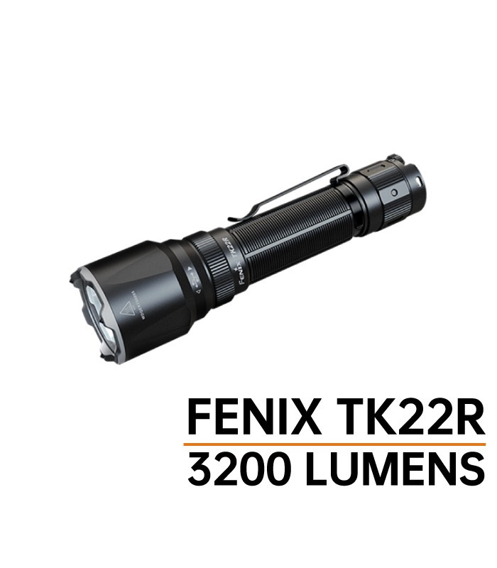 La nueva linterna táctica y de servicio Fenix TK22R destaca en rendimiento y despliegue táctico. Alimentada por una única batería de gran capacidad de 5000 mAh, la linterna ofrece una salida máxima de 3200 lúmenes y una distancia máxima del haz de 480 metros. Opere rápida y fácilmente la linterna para encender/apagar o seleccionar los modos requeridos mediante el control patentado FlexiSensa y el interruptor táctico de doble función. El modo Apagar/bloqueo podría evitar la activación accidental. Un cuerpo compacto con un bisel de acero inoxidable y tres bolas de carburo de tungsteno incrustadas son el diseño perfecto para las fuerzas del orden, la seguridad y la defensa.