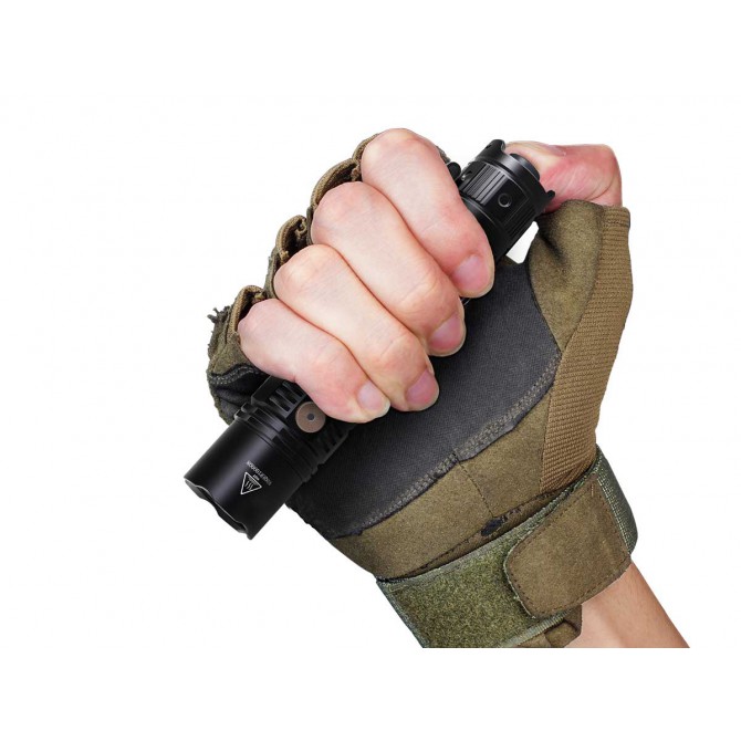 La Fenix PD36R incorpora dos interruptores duales para combinar de forma sencilla y práctica las distintas configuraciones de intensidad luminosa según las necesidades específicas marcadas por el usuario. Así mismo, incluye un micro-controlador interno de última generación que reducirá los tiempos de cambio al máximo.