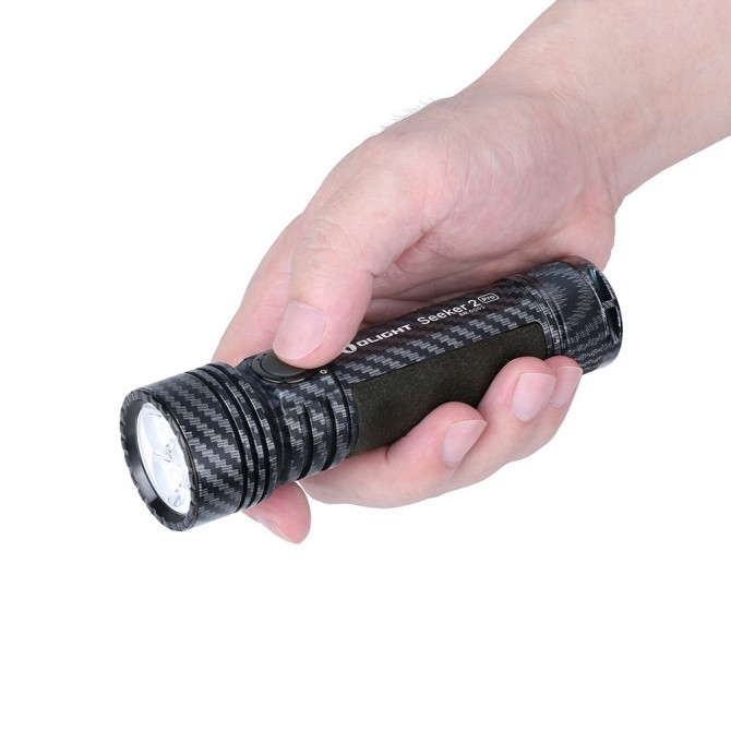 "Excelente linterna, bueno, como todas la OLIGHT. Es que tengo de este modelo Seeker 2 Pro la Negra, la Azul, la Desert, con esta de Fibra de Carbono es mi cuarta Seeker 2 Pro, y hoy me compro la Naranja. Es que son un pedazo de linterna de la ostia, manejables por su tamaño, y si compras la "funda rígida SK2 Molle" la encuentro muy táctica, para el cinturón, y con esta "funda" ya te queda el equipo linterna-funda de cine, de hecho ya lleva una funda de serie que no está nada mal. Si buscas una linterna que sea la ostia (muy tecnológica, potente y que no dejará indiferente a tus amistades), ésta es una pieza excelente. Os adjunto 2 fotitos porque una imagen vale más que 1000 palabras. "