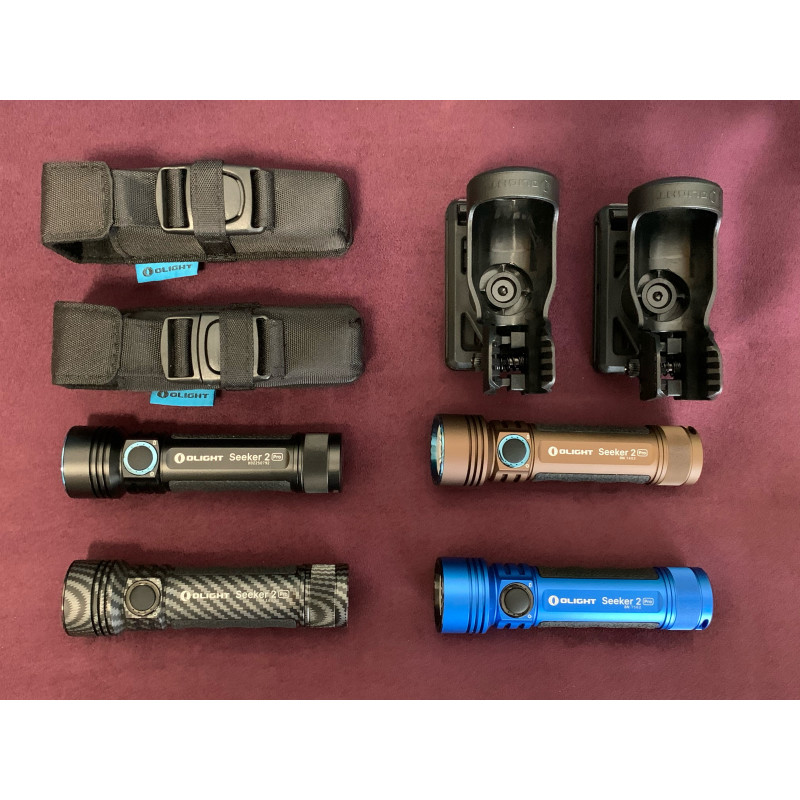 "Aquí podeis ver las 4 Seeker 2 Pro que tengo a día de hoy 07-12-2020 (hoy me compro la de color naranja metalizado). La Azul es la que llevo en el coche (en el cofre reposabrazos). La Negra para acompañar en la maleta negra PELI 1500 de la GLOCK 34 Gen5, la Desert para acompañar a la maleta desert PELI 1500 de la GLOCK 19X, la de Fibra de Carbono para acompañar a la maleta PELI 1510 de la SIG SAUER P320 X-Five y SIG SAUER Mosquito. La que me falta, la de color Naranja la pondré en la maleta naranja PELI 1500 de equipamiento de primeros auxilios y superviviencia. Por supuesto que las 3 pistolas las tengo con 2 OLIGHT BALDR Pro (1 negra y 1 desert -linterna y láser verde) y tambien tengo 2 OLIGHT BALDR Mini (1 negra y 1 desert -linterna y láser verde), estas Mini compradas hace una semana en el BlackFriday. "