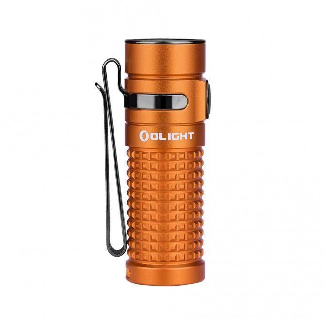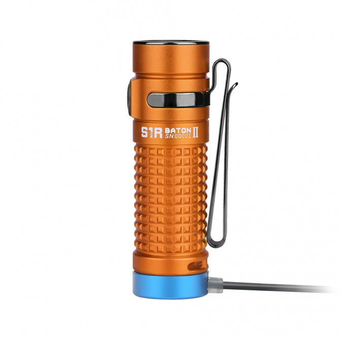 Presenta una novedad respecto al anterior modelo: su acabado en aluminio desert mate anodizado de tipo III con una textura de pequeños cuadrados para facilitar el agarre y mejorar la manejabilidad de la linterna. La nueva Olight S1R II es un producto mucho más práctico ya que lleva incorporada una base magnética que ofrece la posibilidad de adherir la linterna a superficies metálicas, por lo que puede utilizarse sin necesidad de cogerla con las manos.
