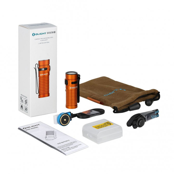 La linterna Olight S1R II puede sumergirse bajo el agua hasta un máximo de dos metros. A su vez, debido a su práctico tamaño (63 mm) y su pequeño peso (51 gr. con batería y 36 gr. sin batería), puede utilizarse en diversas actividades como senderismo, orientación, camping, pesca, y usos diarios (transporte, automóvil u hogar).