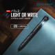 El O'Pen 2 es el primer bolígrafo EDC de OLIGHT con función de iluminación. Puede integrarse o dividirse en dos partes funcionalmente independientes: un bolígrafo y una linterna. La punta del bolígrafo es muy suave para escribir y la tinta es legible. El diseño de acción de cerrojo tipo L permite sacar rápidamente la punta y hacerla rebotar. La linterna LED se encuentra en la parte superior de OPEN 2. Con un solo clic en el interruptor en la parte superior para activar la luz, puede ofrecer 4 niveles de brillo desde 5 lúmenes hasta 120 lúmenes. Y también se puede dejar a un lado para escribir en la oscuridad. La batería de polímero de litio recargable incorporada, la popular interfaz USB-C y el indicador de carga garantizan una carga sin preocupaciones. El OPEN 2 es duradero y liviano (38g) para llevarlo todos los días en el trabajo, patrullaje, viajes, etc.