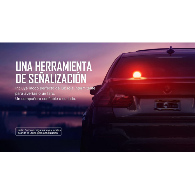 Incorpora 4 modos de luz, muy práctica para excursiones a la montaña, válida también para llevar en el coche como señalización e iluminación de emergencia. Uno de los modos de luz roja intermitente es perfecta para averías o como faro. Así mismo, es una linterna pequeña y compacta e incorpora imán para mayor seguridad.