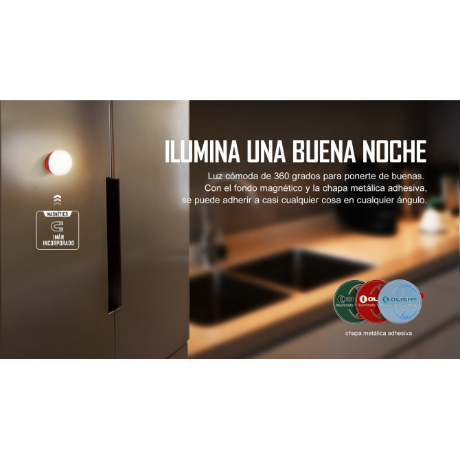 La linterna Olight Obulb resulta muy cómoda porque da luz a 360 grados y gracias al fondo magnético y la chapa metálica adhesiva puede pegarse a casi cualquier superficie en cualquier ángulo. Para los dormitorios de los niños es ideal para no dejar la habitación totalmente a oscuras (luz suave de 3,5 lúmenes) ideal para dormir.