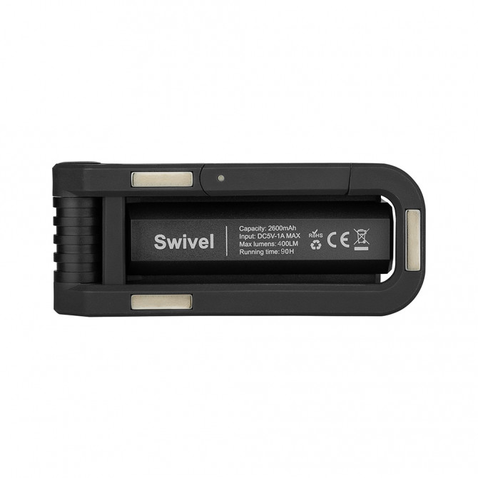 La prestigiosa empresa de iluminación Olight ha desarrollado la linterna de herramienta Swivel en color negro, que presenta una estructura ajustable con una base magnética para poder sujetarla a cualquier superficie de hierro. Dispone de una potencia máxima de 400 lúmenes que alcanzan los 262 metros.