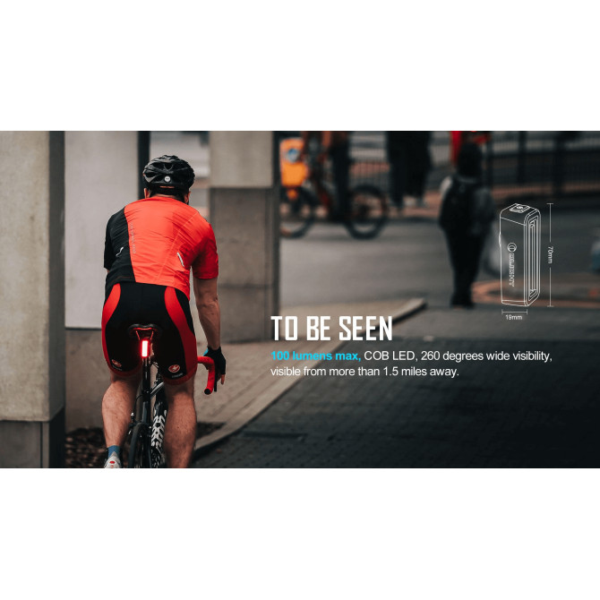 Olight incorpora a catálogo otra nueva linterna trasera para ciclistas. El modelo RN 100 TL es una luz para bicicletas, es recargable y tiene un diseño compacto. Nos ofrece una potencia de 100 lúmenes. Cuenta con varios niveles de iluminación y una autonomía de 2 horas. Visibilidad de 260º.