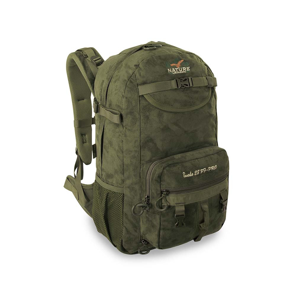 La firma italiana Marsupio ha desarrollado la mochila Suede 28 PF Pro ideal para caza. Está fabricada en suede (ante), un material impermeable. Así mismo, incluye un bolsillo retráctil para rifle que cuenta con correas de ajuste. Otra de las ventajas de esta mochila es que cuenta con una capacidad de 28 litros.