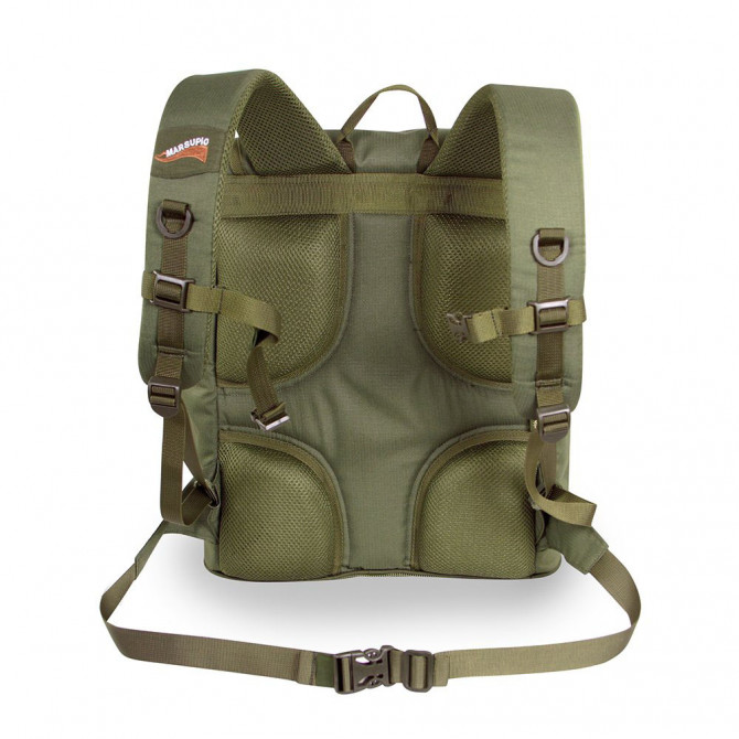 La Marsupio Forest 35L Bis está equipada con dos bolsillos laterales, uno de ellos es un portabotellas que está aluminizado para mantener las bebidas frías. A su vez, cuenta con bolsillos frontales y un bolsillo en la seta.