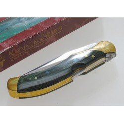 Navaja española fabricada por Muela con hoja de acero MoVa , bloqueo de palanquilla...