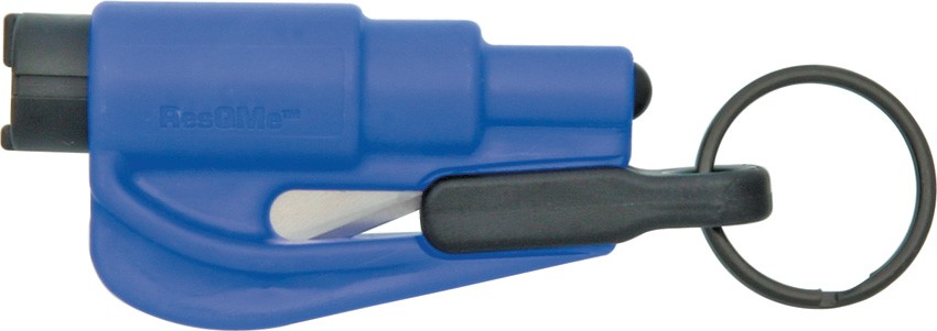 LifeHammer ResQMe Keychain Rescue Tool. Dual function: 1) Blade cuts through jammed safety belts. 2) Spring-loaded head breaks side and rear automotive windows. Hang packaged.