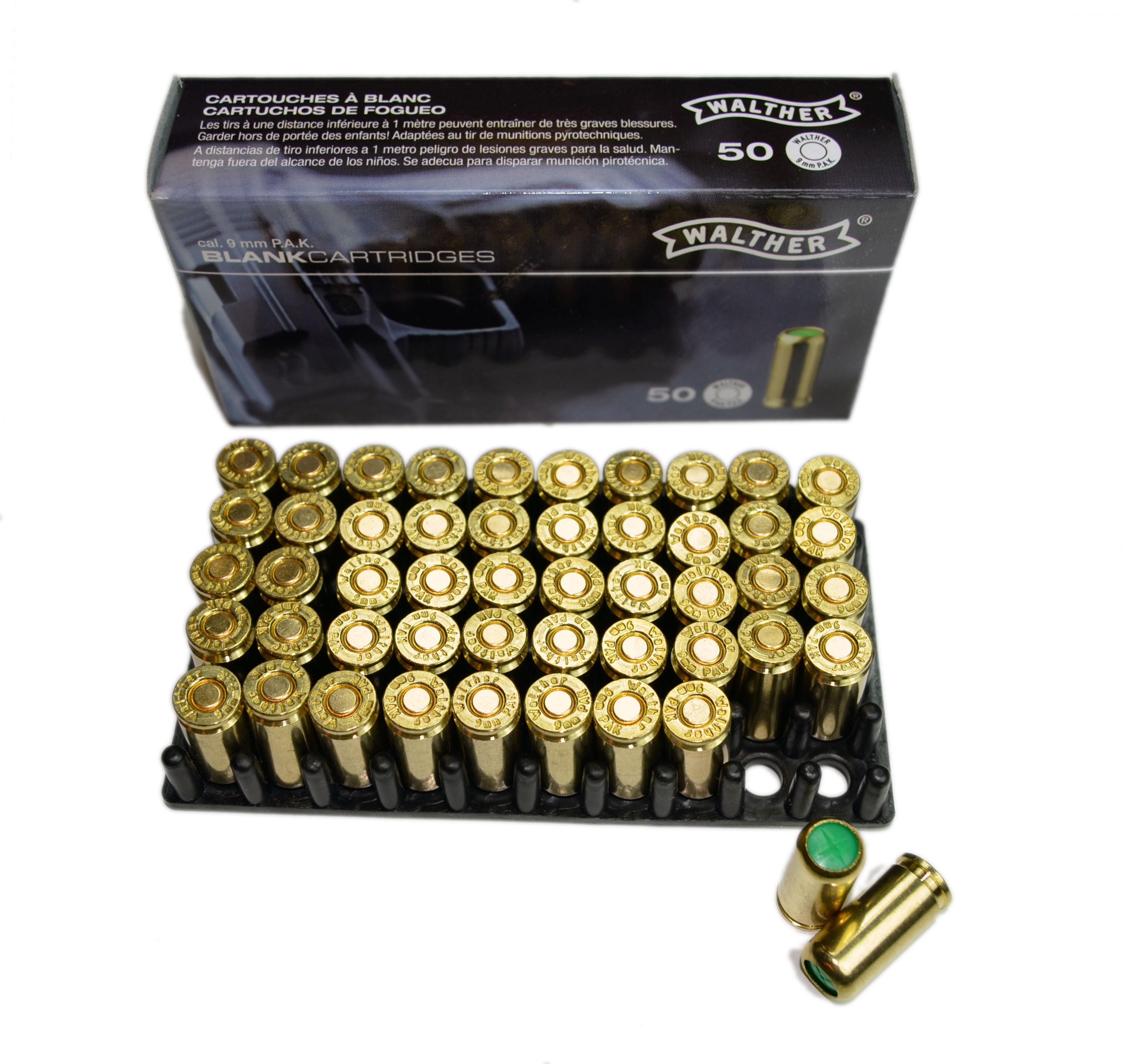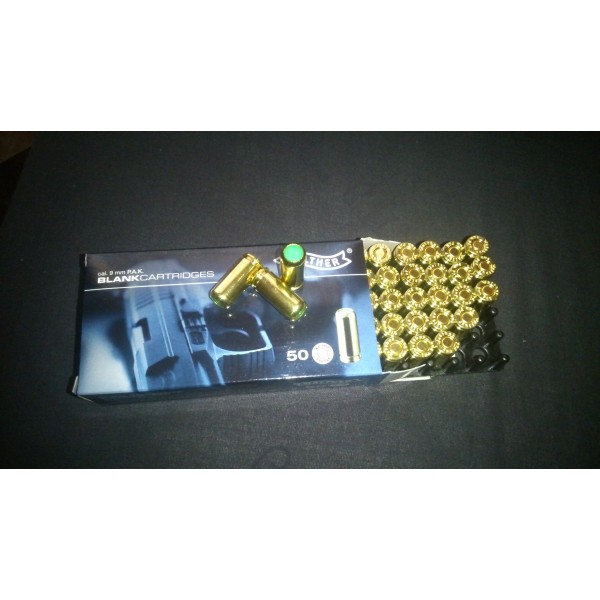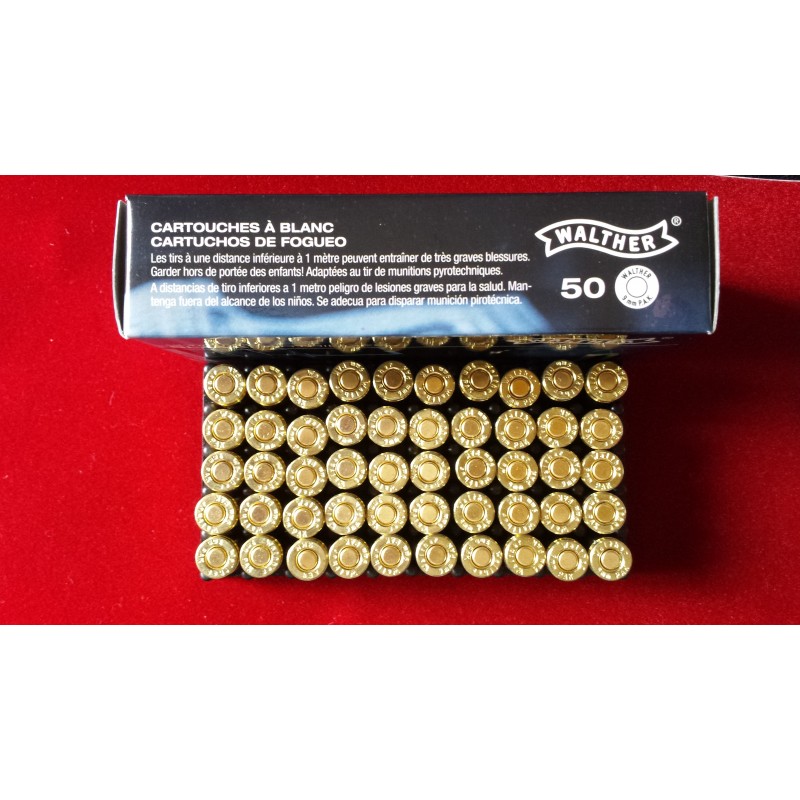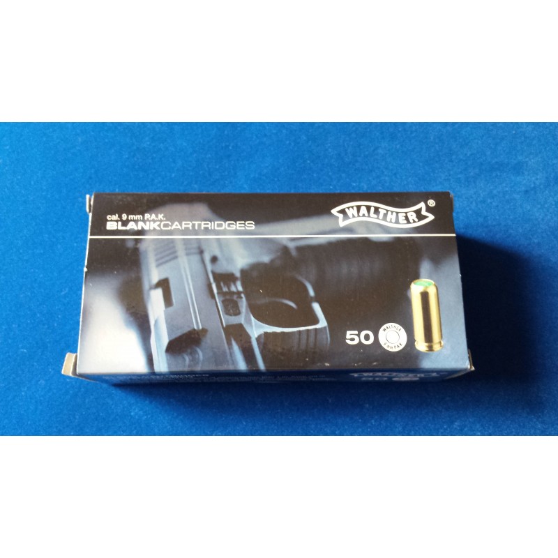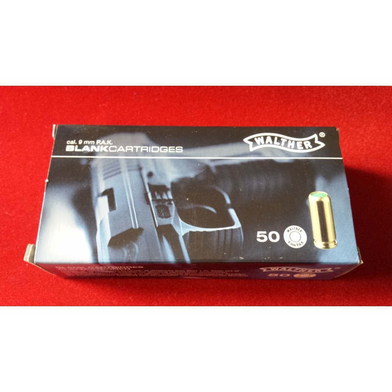 caja de municion detonadora marca Walther de 9mm PAK de 50 cartuchos de muy buena calidad por su marca
