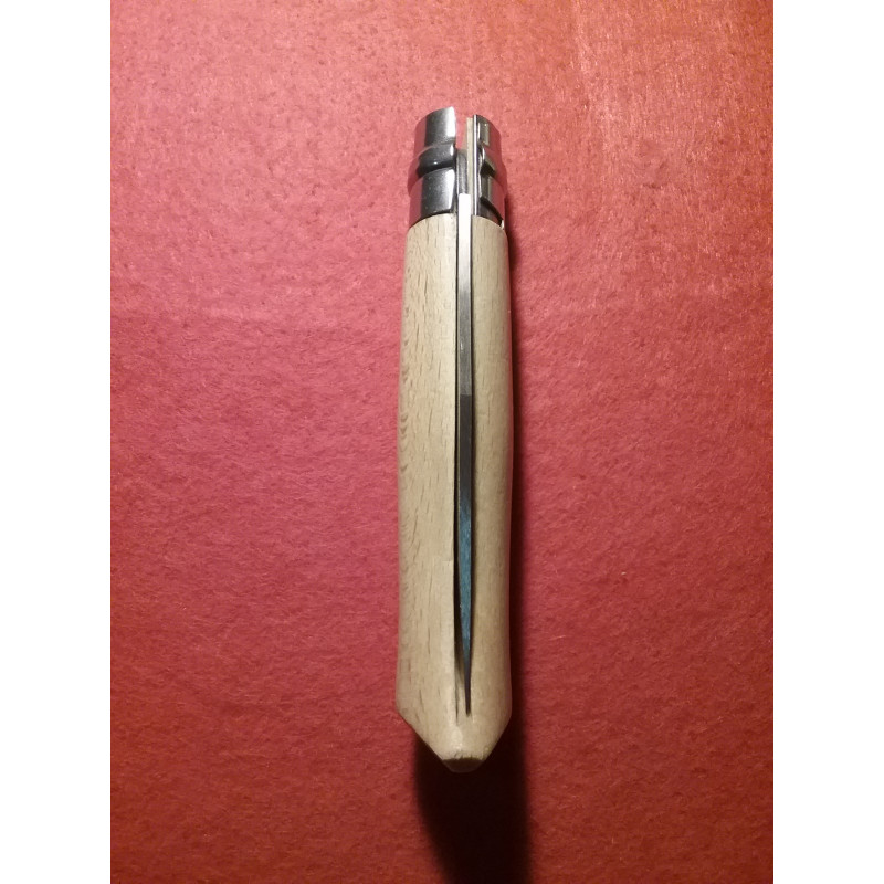 Para la fabricación de la hoja de esta Opinel Nº10 Inoxidable se ha utilizado un tipo de acero anticorrosivo gracias a la adición de cromo, que no requiere ningún mantenimiento especial. Además, posee un alto contenido de carbono de al menos 0,40% para obtener como resultado un excelente filo.