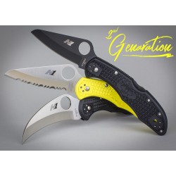 Navaja Spyderco con hoja fabricada en acero H1 y cachas de color amarillo fabricadas en FRN. Incluye mosquetón en las cachas para portar fácil. Incluye agujero para cordón fiador.