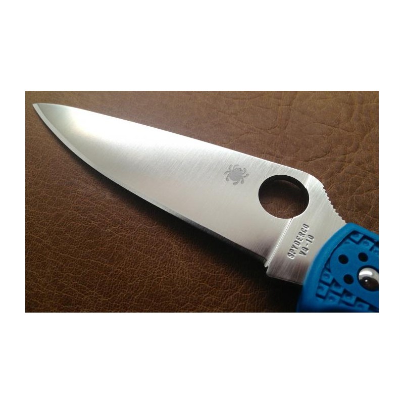 la navaja tiene el clasico diseño de spyderco con un agujero en la hoja de la navaja que te permite abrila con una sola mano