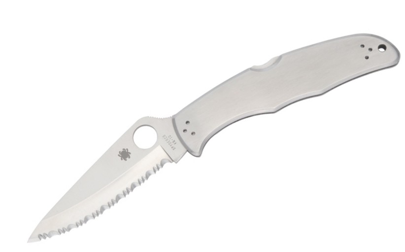 Chachas en acero ideal para grabado. En el interior de las cachas acero inoxidable esqueletizados dual hacen que el la navaja sea más fuerte sin añadir peso.