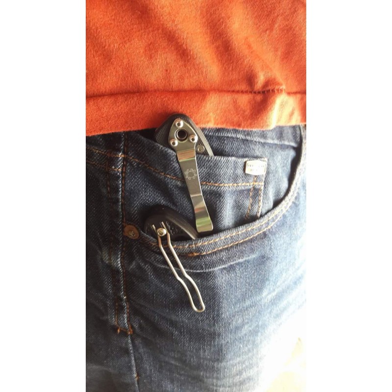Una comparativa para ver su portabilidad en el bolsillo. Arriba la ambitious y abajo una manía. Como podemos observar esta Spyderco es super soportable ya que coge en el bolsillo pequeño del pantalón,gracias a su tamaño y diseño. Un gran compra y muy recomendable