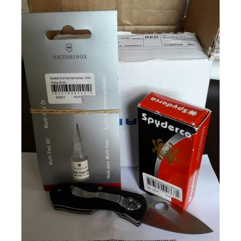 Foto cuando realice el pedido de esta navaja,completado con un buen aceite como es el de victorinox,a muy buen precio. Un embalaje perfecto y los dos productos de 10