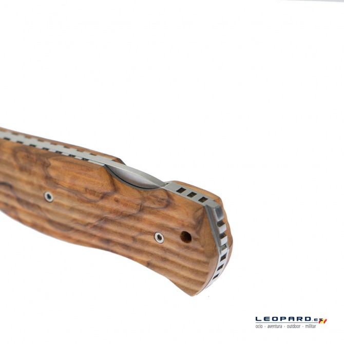 Los desarrolladores españoles de Nieto han escogido un material natural para la fabricación de las cachas de esta navaja. La madera de olivo es muy resistente y presenta una gran variedad cromática e irregularidad en sus vetas.