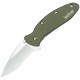 Scallion A/O - 3 1/2" closed linerlock. 2 1/4" bead blast finish 420HC stainless recurve blade with dual thumb studs, drilled hole design and extended tang. Features SpeedSafe torsion bar mechanism for assisted opening. Olive drab anodized 6061-T6 aluminum handles. Lanyard hole. Stainless pocket clip.