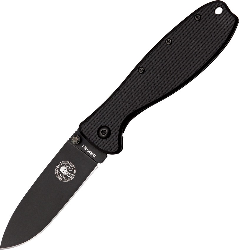 Zancudo Framelock - 4" closed. 3" black EDP coated AUS-8A stainless blade with dual thumb studs and thumb ridge. Black glass filled nylon front handle. Black finish stainless back handle. Lanyard hole. Reversible black finish stainless pocket clip. Designed by Randall's Adventure and Training. (The word Zancudo is Spanish for Mosquito).